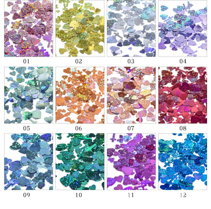 ・サイズ: ハートサイズ2ミリ3ミリ4ミリ クロスサイズ 4ミリ ・素材:薄いホログラム ・色:12色 ・ご注意:モニターの発色の具合により、実際のものと色が異なる場合がございます