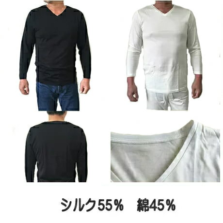 紳士用 シルク&コットン Vネック長袖インナー M〜LL【メール便選択で送料無料】■おすすめ