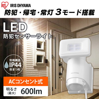 LEDセンサーライト 屋外 人感 コンセント式 アイリスオーヤマ 1年保証 防犯ライト 600lm 防雨 防水 防塵 防犯センサーライト 人感センサー センサー ライト 常灯 AC式 投光器 作業灯 センサーライト 玄関ライト 玄関 防犯 LSL-ACSN-600