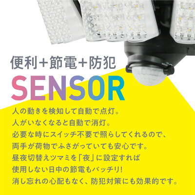 LEDセンサーライト 3灯式 AC電源タイプ ●センサー人の動きを検知して自動で点灯。