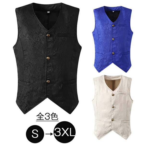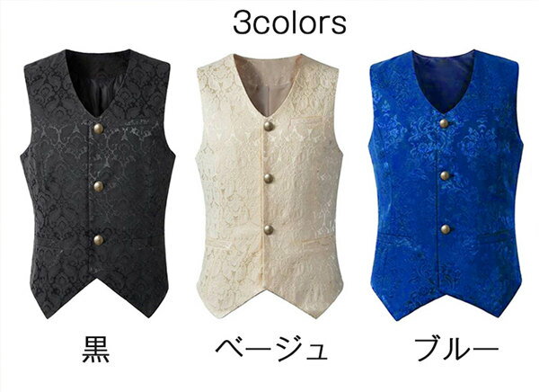 ヨーロッパ中世 ベスト 全3サイズ3色 フォーマルベスト チョッキ トップス 大きいサイズ 紳士服 演奏会 コスプレ かっこいい 復古風 男性 中世 北欧 演劇 紳士 貴族 刺繍 シンプル コスチューム S/M/L/XL/2XL/3XL 白 黒 ブルー d9013d4d4x1