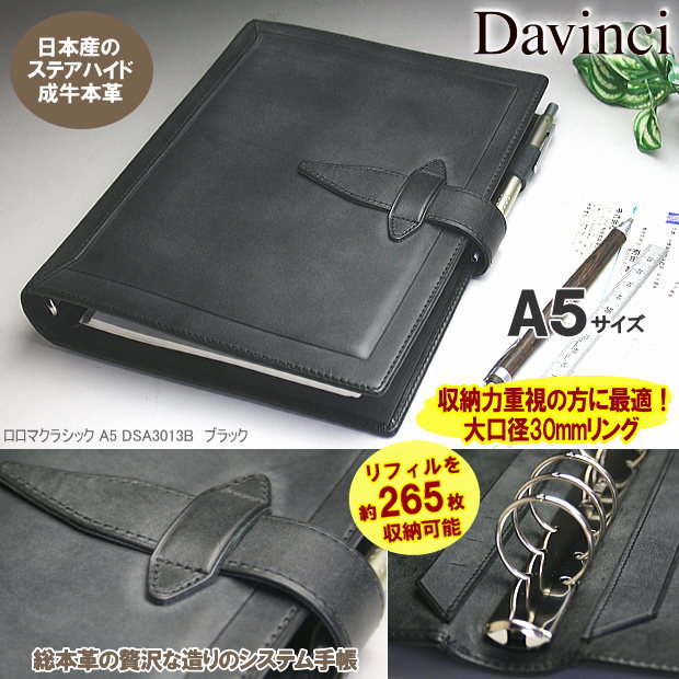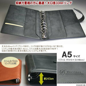 ダ・ヴィンチグランテ 本革 黒 A5システム手帳 大口径30ミリリング