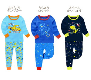 【送料無料】 【即納】 光るプリントパジャマ ベビー キッズ 子供服 ルームウェア 光る 蓄光 パジャマ 男の子 長袖 トップス パンツ 2点セット 伸縮性 ボーダー コットン 100cm 110cm 120cm 130cm 140cm 150cm
