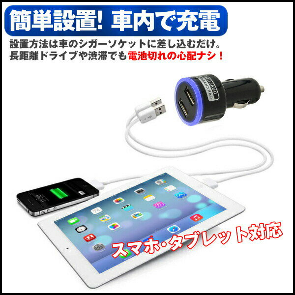 シガー USB シガーソケット カーチャージャー シガーソケット 充電 2ポート 2連 iPhone android iPad 携帯 充電器 車載 ブルー