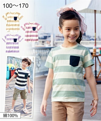 トップス チュニック 綿100%ボーダー半袖Tシャツ 男の子 女の子 子供服 ジュニア服 ニッセン nissen
