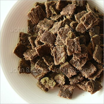 ●原材料 ビーフ(生) ビーフハート(生) ビーフキドニー(生) ビーフトライプ(生) ビーフレバー(生) ビーフラング(生) 緑イ貝 ビーフ骨 レシチン イヌリン(チコリ根由来) ケルプ(乾燥) 海塩 ●保証分析値 タンパク質 38%以上 脂質 30%以上 粗繊維 2%以下 灰分 12%以下 水分 14%以下 コンドロイチン硫酸 1,300mg/kg以上 ○代謝カロリー 550kcal/100g AAFCO推奨カロリー計算係数では、417kcal/100g ●栄養添加物 ビタミン類:チアミン 葉酸 ビタミンD3サプリメント ミネラル類:キレートマグネシウム キレート亜鉛 キレート銅 セレン酵母 キレートマンガン 酸化防止剤として天然ミックストコフェロール/ビタミンE DLメチオニン タウリン ●原産国:ニュージーランド ●粒サイズ:約15mm×14mm